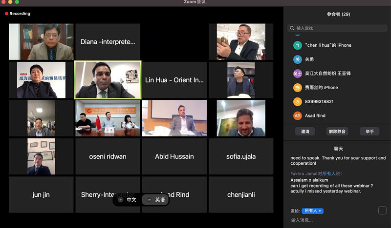 【安徽轻工网讯】日前,中国-巴基斯坦纺织业线上论坛活动在线举办。此次论坛由巴基斯坦驻上海总领馆与中国纺织进出口商会联合举办,旨在新冠疫情常态化条件下,促进中巴纺织服装业界交流,深化两国业界合作,共同促进两国各领域友好关系的发展。巴基斯坦贸易发展局贝斯提·卢胡主任、巴基斯坦驻上海总领馆侯赛因·海德总领事做主旨演讲,商会曹甲昌会长出席论坛活动并致辞。