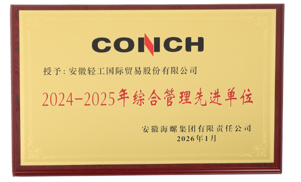 在海螺集团近日隆重召开的2026年度工作会议上,我司(安徽轻工国际贸易股份有限公司)及子公司合肥大中进出口有限公司凭借突出的综合管理与经营业绩,双双荣获“2024-2025年度海螺集团综合管理先进单位”称号。同时,公司张侠、董建国、韩梦悦三位同志以出色的工作表现和突出的业务贡献,荣获“2024-2025年度海螺集团先进工作者”称号。多项荣誉的取得,充分彰显了公司推进高质量发展的坚定决心,也生动展现了全体员工奋勇争先、昂扬向上的精神风貌。