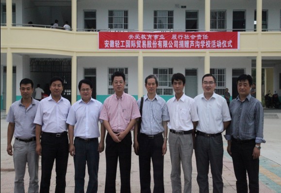 [安徽轻工网讯] 教师节前夕,柳夕良总裁带领公司团委书记谭栋敏等一行,专程赶赴淮北市,出席了我司对双堆集镇芦沟学校的捐赠仪式。双堆集是革命老区,是当年淮海战役的主战场。